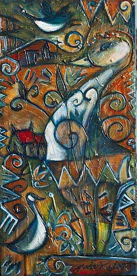 Dame oiseau 12x24